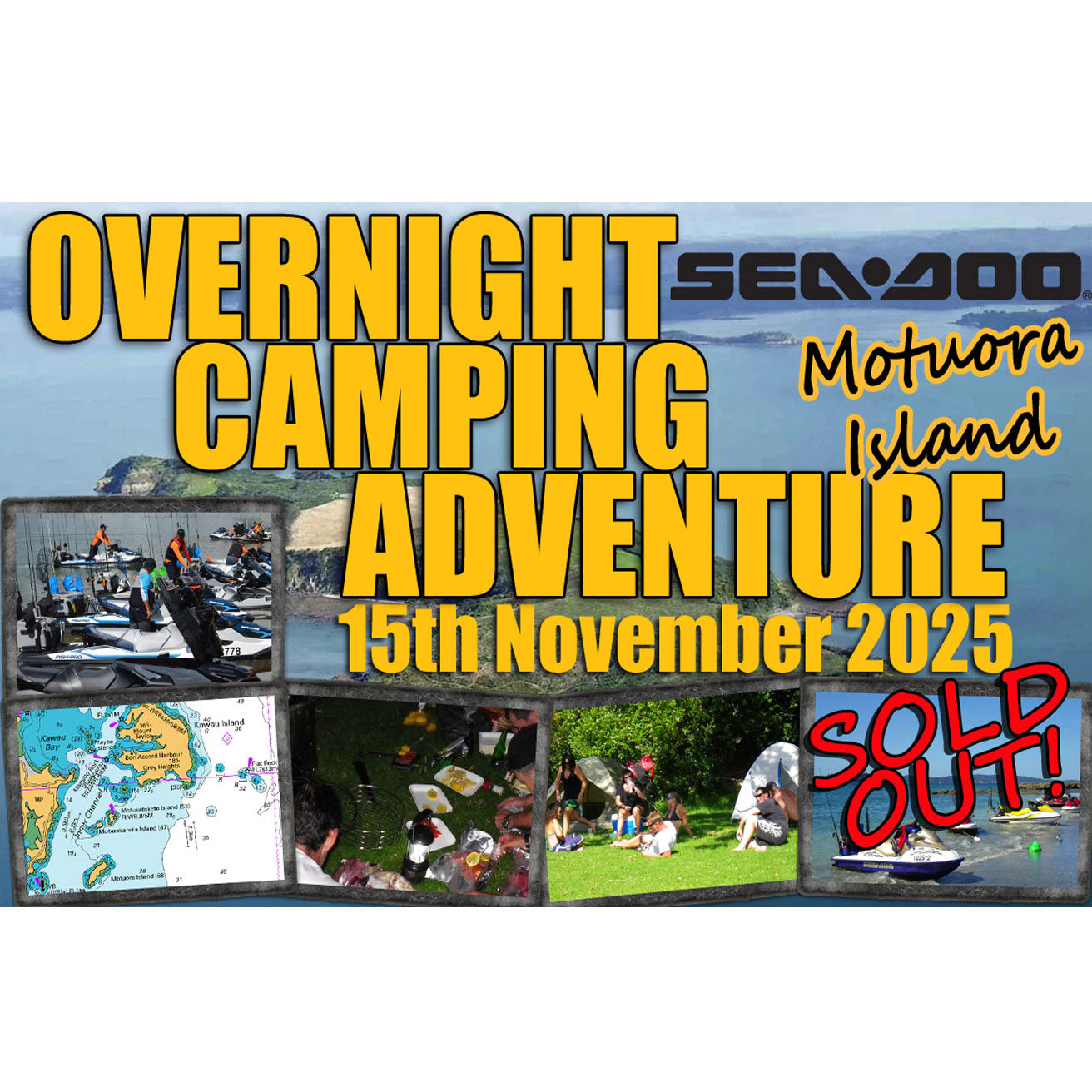 We are going on an overnight Sea-Doo Camping Adventure to an island in the Hauraki Gulf!